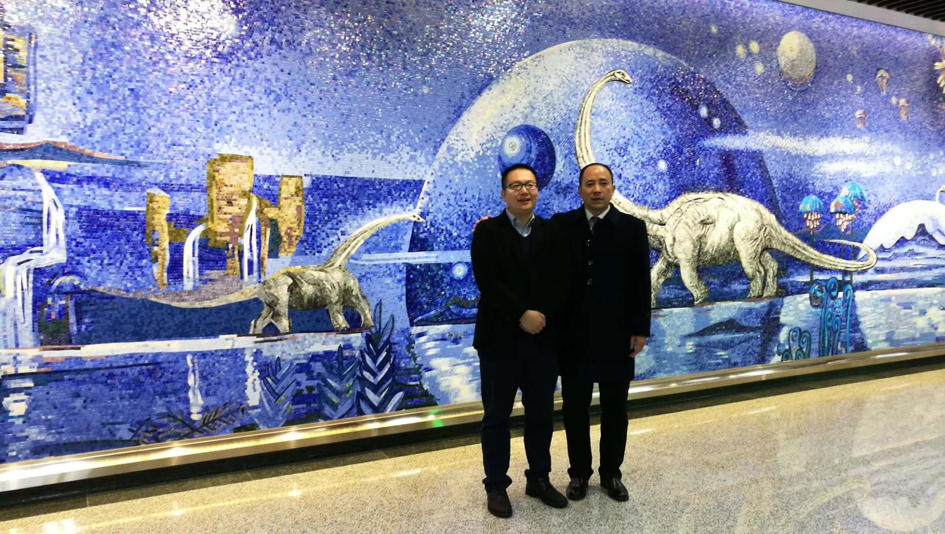 蒙娜麗莎瓷藝在行業內首創(chuàng)“新型多材料復合壁畫”新概念,以大規(guī)格瓷板為基礎,多種裝飾材料有機結合的方式,規(guī)避了傳統單一材料彩繪壁畫立體感弱,浮雕、雕塑壁畫色彩單一,單材料質感對比不強等問題,結合多年的項目實踐,實現了以陶瓷、石材、馬賽克等材料為主體,復合不銹鋼浮雕、鍛銅浮雕、砂巖浮雕、石材浮雕等多種材料,形成了色彩艷麗、材質對比豐富、立體感強等表現力強烈的表達手法。